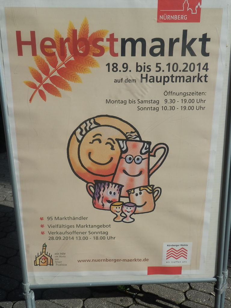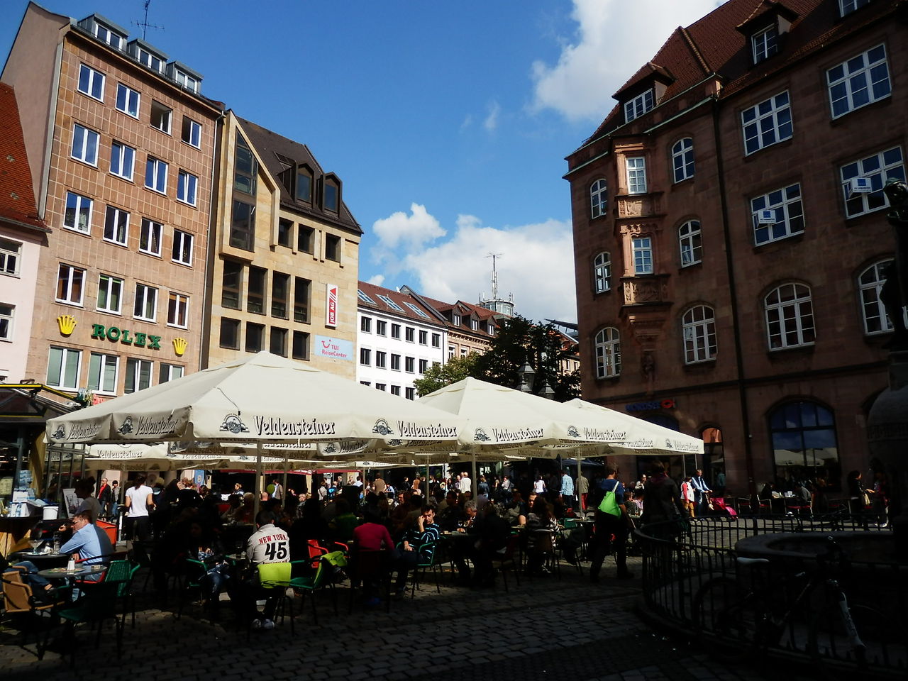 (写真:只今ミュンヘンでは世界的に有名なオクトーバーフェストが開催されていますが、ここニュールンベルグでは、秋祭りと旧市街のお祭りが開催されていて、世界中から沢山の観光客が来ています。どちらにしても食べてビールやワインを飲むお祭りですね〜