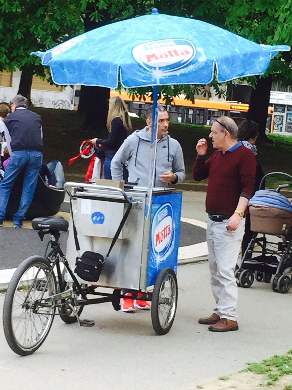 (写真左:公園にアイスクリームやさんが来ていました