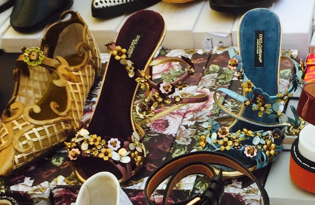(写真左:Dolce e Gabbanaのサンダルが安くなっていました…と言っても995ユーロが450ユーロになってもまだまだ高〜いmercatoは、私にとって買物をする場だけではなく、学びの場所です。