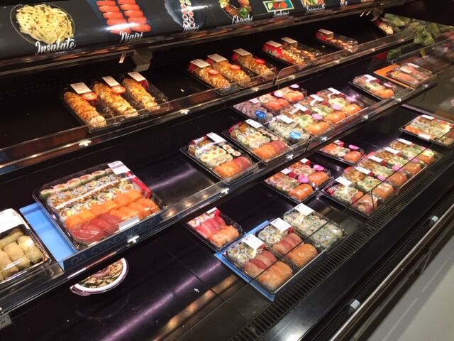 すが、一般のお惣菜と一緒に、餃子、春巻きと一緒にお寿司が置かれていたり、お豆腐は自然