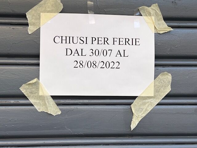 ただでさえ、夏はvacanza, vacanzaのイタリアですが、今年は5月半ば過ぎから例年以上の暑さも加わり、vacanzaムードはいつもより早くから高まり、例年より早めにvacanzaに行く人、閉まるお店も多かったです。家の左横のピッザリア、右隣のカフェも7月末に閉店となり、再開は8月末です。