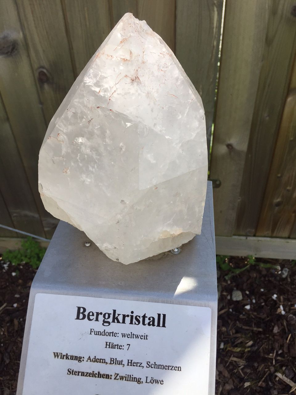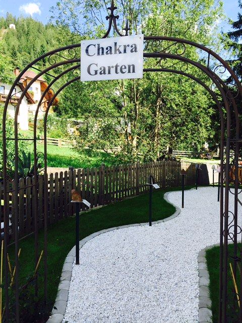 (写真左:水晶はドイツ語では、Bergkristallベルグクリスタル、山の水晶と呼ばれています。こちらはチャクラガーデンに置かれていたクリスタルで、石の効果が書かれていました。)お庭にも沢山の石が並んでいました。ここを歩くだけで浄化されそう